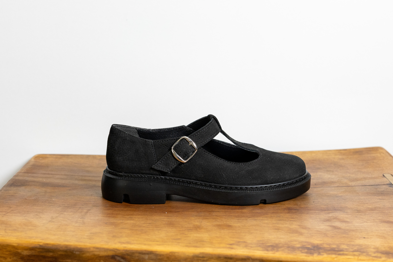 Design T-Strap: Bareta elegantă în formă de „T” cu cataramă metalică argintie asigură o fixare perfectă pe picior și un stil atemporal.
