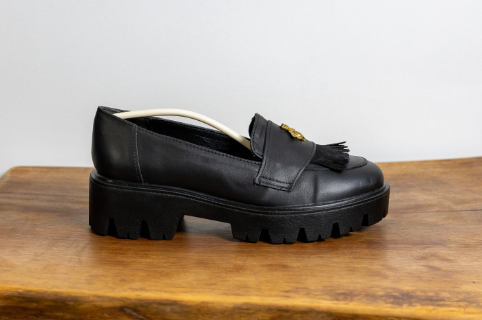 Talpă: Talpă neagră mată, robustă și ergonomică, concepută pentru a oferi suport maxim fără a îngreuna piciorul.
