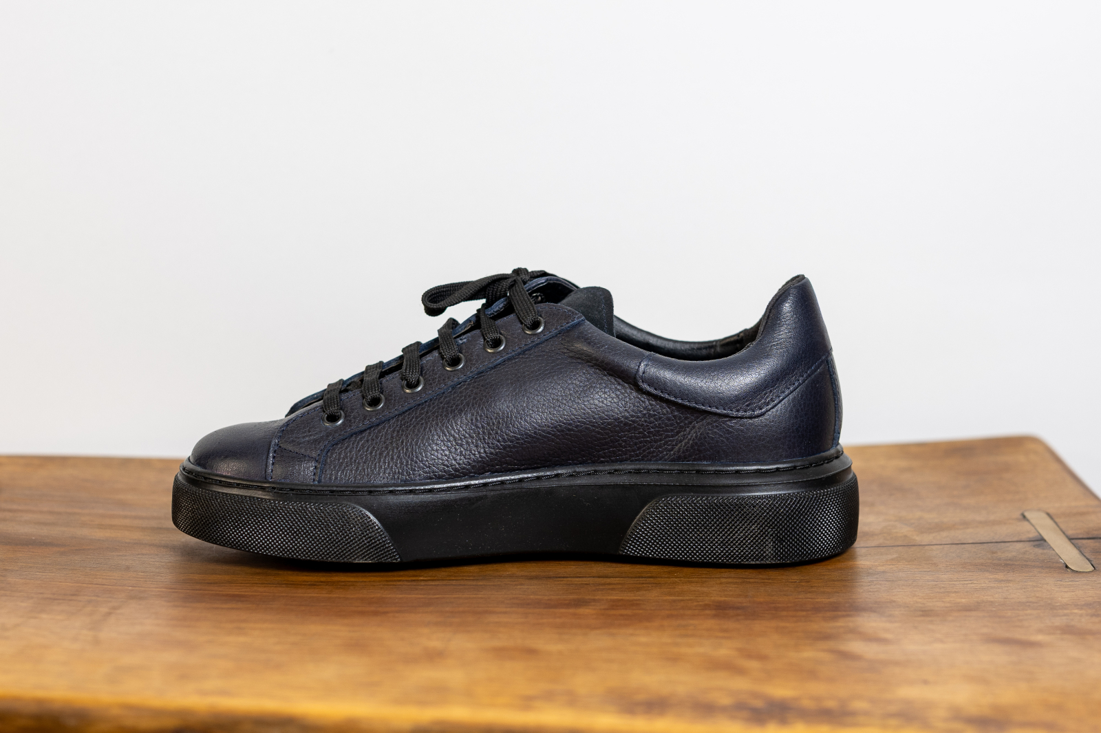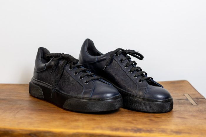 • Detalii: Culoare bleumarin închis (navy) cu reflexii metalice discrete. Designul este minimalist, cu șireturi negre plate și cusături fine, fiind ideali pentru o ținută smart-casual.